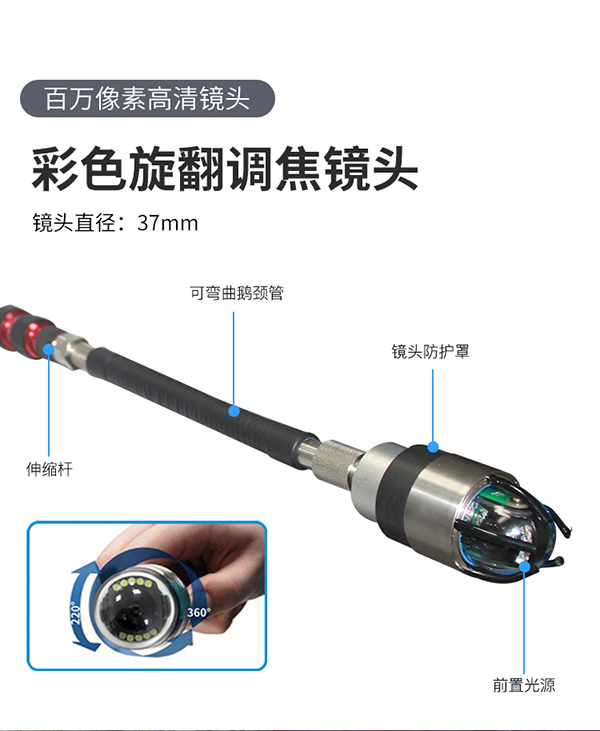 GTTC47R手持多功能探測儀能夠使救援人員看到被埋在廢墟下的被困者,并通過安裝有話筒的高清彩色攝像頭,與受困者進行清晰的視頻和通話功能。適用于在地震、轟炸以及建筑物內爆炸等之后的救援工作。在救援現場,當遇到復雜的現場環境時,例如水陸混雜、不規則縫隙、日照強光等,一般的直柄式的探桿視頻設備無法滿足現場,集視頻搜尋與雙向通話功能于一身的手持多功能探測儀,能夠迅速對受害者展開搜索與定位。產品采用5.1寸高清液晶顯示屏,拍照錄像一體化設計,為制定詳細的救援方案提供直接的依據。同時,可折疊遮陽板有效解決了顯示器屏幕反光的問題;還可選配紅外攝像頭,即使在無光亮的環境中,也可以清晰觀察到黑暗中的情況!高清成像,全程動態錄像;采用輕型伸縮桿,輕便易操作。最長伸縮總長可達3米,最長調節長度可達1.2米;伸縮桿前端設計有20cm長的鵝頸管,當現場遇到彎曲探道時,一般的直柄式的探桿視頻設備觀察易受阻,可彎曲鵝頸管憑借其超強的韌性,能夠在不規則的縫隙中,高效率檢查。
