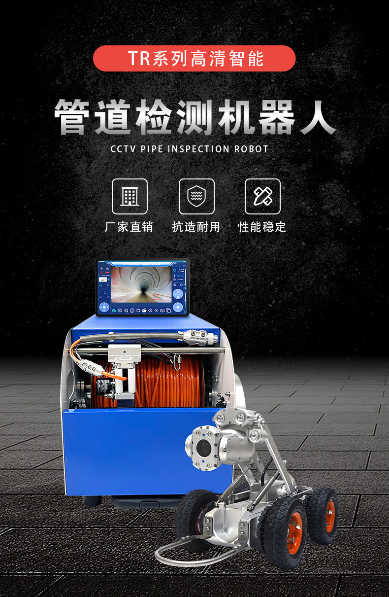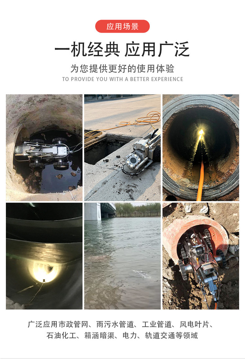 TR200PRO系列CCTV管道檢測機器人應用領域:適用于檢測城市合流污水、生活污水以及工業廢水、城市雨水、供水管道等。